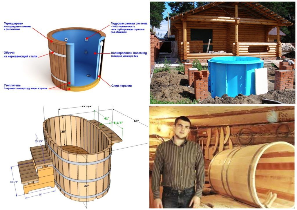 D'ailleurs! Après avoir étudié les matériaux, les propriétaires bricoleurs peuvent créer eux-mêmes une police. Cela s'applique aux options de rue en béton, en métal, en polypropylène (à l'intérieur ou à l'extérieur du sauna). Un tonneau en bois, si vous n'êtes pas tonnelier, peut être acheté au magasin, le reste peut être fait de vos propres mains. Vous aurez besoin des compétences de creuser, de la capacité de bétonner, de poser des carreaux, de connecter des équipements électriques et à gaz.