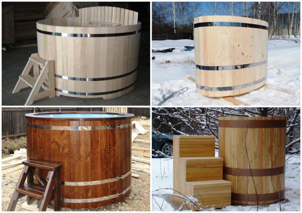 En apparence, les conteneurs sont différents, cela dépend de la conception, de la hauteur-largeur, des matériaux. Il peut être conçu pour deux ou trois, il existe des modèles doubles, des fûts en béton, des micro-piscines. Matériau - du bois au béton, cela dépend de l'imagination et du prix. Vous pouvez utiliser la plupart des modifications dans le pays, dans un chalet (maison privée), dans la cour et même dans un appartement.