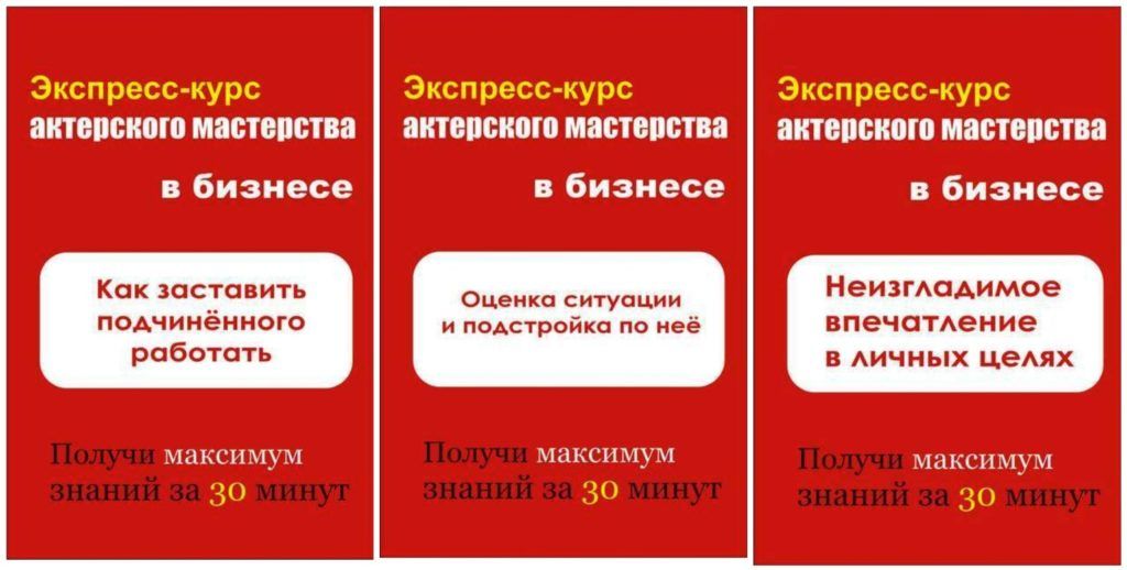 Aujourd'hui, il n'y a pas de problèmes avec les cours, les écoles, les studios, les formations qui enseignent à des personnes qui n'aspirent pas à devenir des sujets de Melpomene. Ils apprennent à parler correctement, à comprendre les mimiques, les gestes, à observer les pauses pour entendre les interlocuteurs, à gérer les émotions pour ne pas nuire, mais pour améliorer le résultat des négociations.