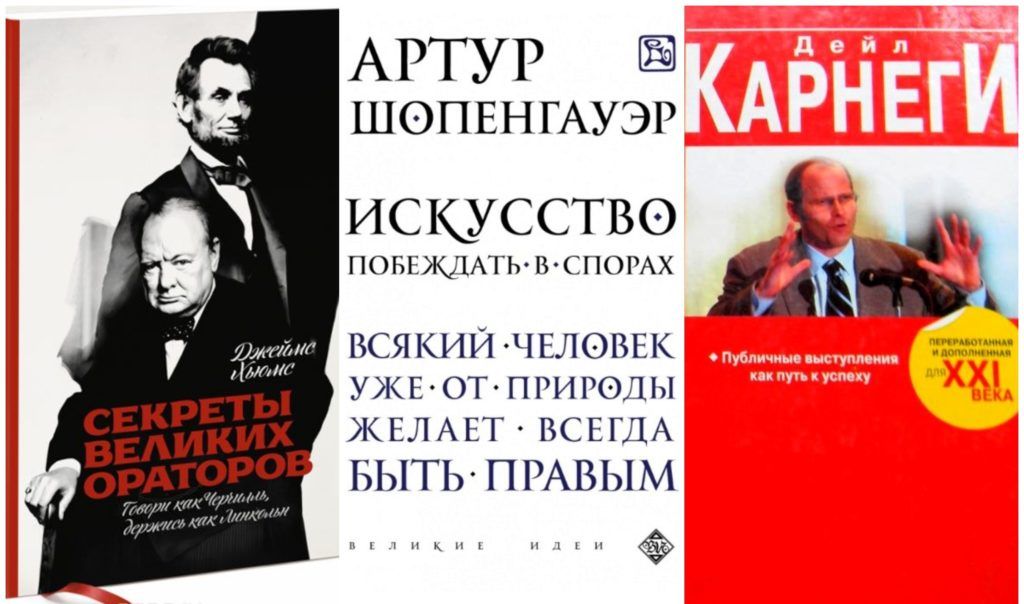 Il existe de nombreux livres sur le développement de la voix, des techniques pour faire face aux peurs de parler en public. Ici, sans navigation, il est difficile de trouver une littérature utile vraiment précieuse. La meilleure option est un classique du genre, des auteurs qui ont confirmé le droit d'être enseignants par les résultats de leur travail. Toute la littérature moderne sur l'oratoire est en quelque sorte basée sur les classiques, seulement retravaillée de manière moderne. Par conséquent, vous pouvez commencer avec des mastodontes reconnus.