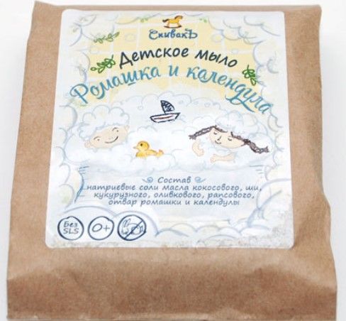 Dans le savon pour bébé, au lieu de l'eau, une décoction de camomille et de calendula est utilisée. La composition ne contient pas d'esters, elle est donc hypoallergénique et convient même aux plus petits.