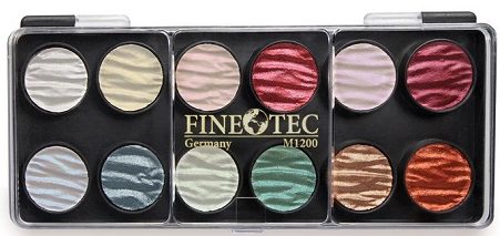 Pour les professionnels, les palettes chics de la marque allemande Finetec sont d'un grand intérêt. Et leur set Finetec Pearl Colors est admiré par tous les fans des beaux-arts. Les produits sont chers, ils sont donc le plus souvent utilisés dans la restauration d'œuvres anciennes ou pour la calligraphie. Le produit est bien emballé dans une boîte transparente, à travers laquelle toutes les nuances sont parfaitement visibles. Chaque abat-jour est solidement fixé, de sorte que rien ne sera endommagé pendant le transport. L'utilisation est simple : mettre une goutte d'eau dans la palette et utiliser le pinceau pour prélever la couleur.