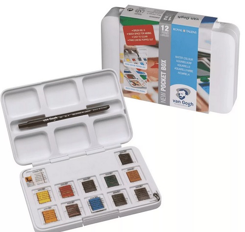 Si vous souhaitez offrir un cadeau ou vous offrir un ensemble de pinceaux d'art de marque, découvrez les 12 couleurs Royal Talens Van Gogh. Le produit est dans une boîte métallique miniature et compacte. 12 fleurs sont disposées en 2 rangées, chaque cuvette est emballée dans un emballage en papier, elle ressemble donc à un bonbon. L'emballage est commodément déplié, formant ainsi deux palettes avec des évidements. Le pinceau de l'ensemble a une taille 3, la pointe est pointue et la peinture prend bien. Le pigment finement broyé se fixe remarquablement sur le papier.