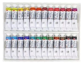 Les artistes confirmés préfèrent souvent le set en tubes "White Nights". Le paquet contient 24 couleurs saturées. La palette de couleurs est variée, si vous le souhaitez, vous pouvez acheter séparément en tubes. Lors de la création, des pigments finement râpés de haute qualité ont été utilisés.L'aquarelle a une grande résistance à la lumière même avec beaucoup d'eau. L'utilisation est économique.