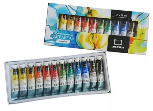 Le set d'aquarelle WaterFall MALEVICH en tubes gagne de plus en plus en popularité. Cet ensemble a été créé avec des artistes russes, il prend donc en compte tous les besoins des beaux-arts et son prix est tout à fait abordable. La composition contient de la gomme arabique naturelle et divers ingrédients naturels. Le paquet contient 12 couleurs, dont 8 monopigments. Les couleurs elles-mêmes sont vives et se mélangent bien les unes aux autres, vous pouvez donc obtenir de nombreuses nuances qui ne sont pas incluses dans l'ensemble.