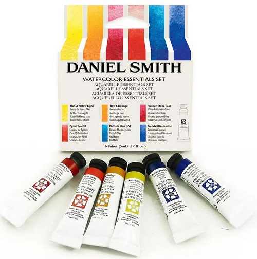 Un autre fabricant américain approuvé par tous les amateurs d'art est Daniel Smith. L'aquarelle de marque compte plus de 200 nuances, réputées pour la pureté des pigments. Puisque les prix mordent, le fabricant permet d'acheter une carte sonde avec 228 couleurs. Il est facile de les tester. Pour ce faire, vous devez humidifier le pinceau avec de l'eau et dessiner un frottis sur la feuille. Les peintures sont faites à la main dans la ville de Seattle. Peut-être en combinant Daniel Smith avec des peintures d'autres marques.
