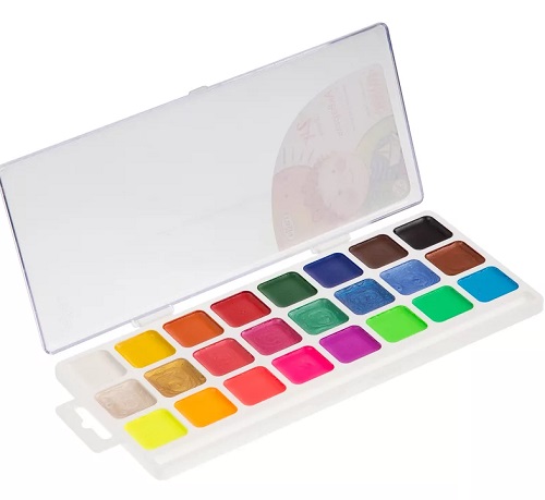 La société Gamma a sorti un set de "Fluriki" avec 20 couleurs d'aquarelle fluo. Leurs caractéristiques sont qu'à la lumière du soleil ou à la lumière artificielle, les couleurs jouent avec des nuances particulièrement attrayantes et les dessins semblent magiques. La force et la résistance à l'eau sont acquises après que l'image soit complètement sèche. Le volume de la cuvette est de 3,5 cm et le poids n'est que de 127 grammes, vous pouvez donc mettre l'ensemble dans le sac à dos de votre enfant et ne pas craindre qu'il porte un poids supplémentaire.