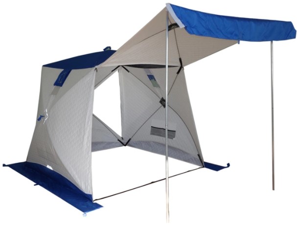 La tente peut être utilisée comme un seul auvent car le sol peut être détaché. Les pêcheurs notent que même par temps pluvieux et venteux, ils ne le ramassent pas plus de 1,5 minute.