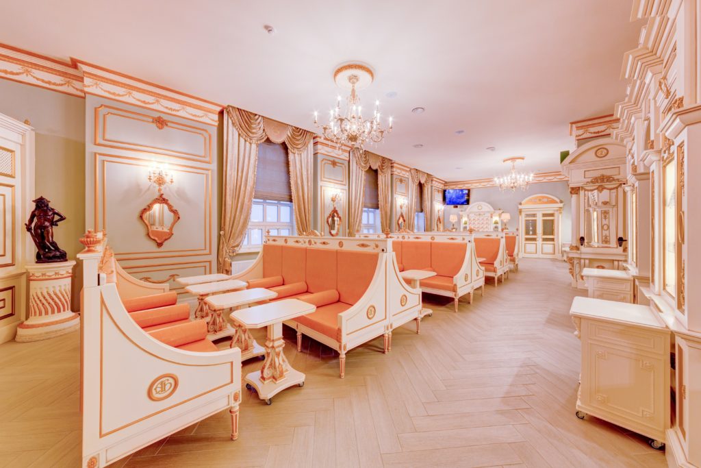 Au rez-de-chaussée se trouve également un "Buffet", conçu dans le style d'un café français confortable du début du XXe siècle, où les clients peuvent déguster des plats et des boissons du menu du complexe même sans visiter les bains.