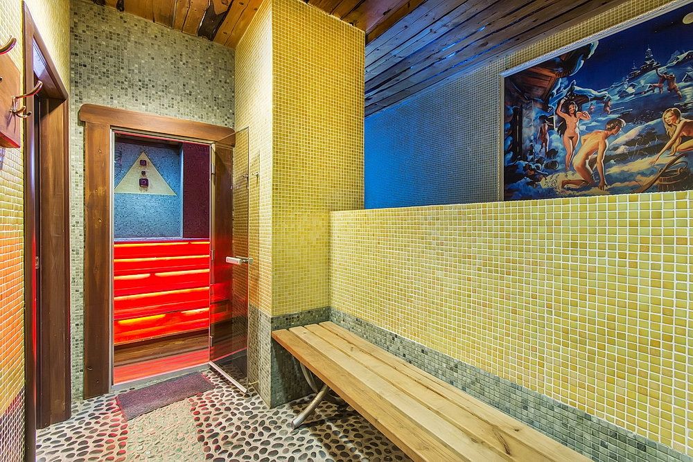 De plus, vous pouvez nager dans la piscine ou plonger dans la fontaine de cèdre. Pour un chauffage uniforme de la pièce et le maintien de l'humidité au niveau optimal, un poêle unique est fourni. Le territoire est complètement fermé aux regards indiscrets et bien gardé. Par conséquent, les visiteurs sont assurés d'une sécurité et d'une confidentialité totales.