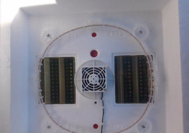Si la taille de l'incubateur est petite, un ventilateur puissant n'est pas nécessaire. Si la capacité de l'appareil dépasse 60 œufs, le flux d'air artificiel devient alors un élément important dans le bon fonctionnement de l'appareil. Il est préférable de choisir des modèles où le ventilateur est situé au centre du couvercle. Dans un tel appareil, l'air pénètre librement dans tous les coins.
