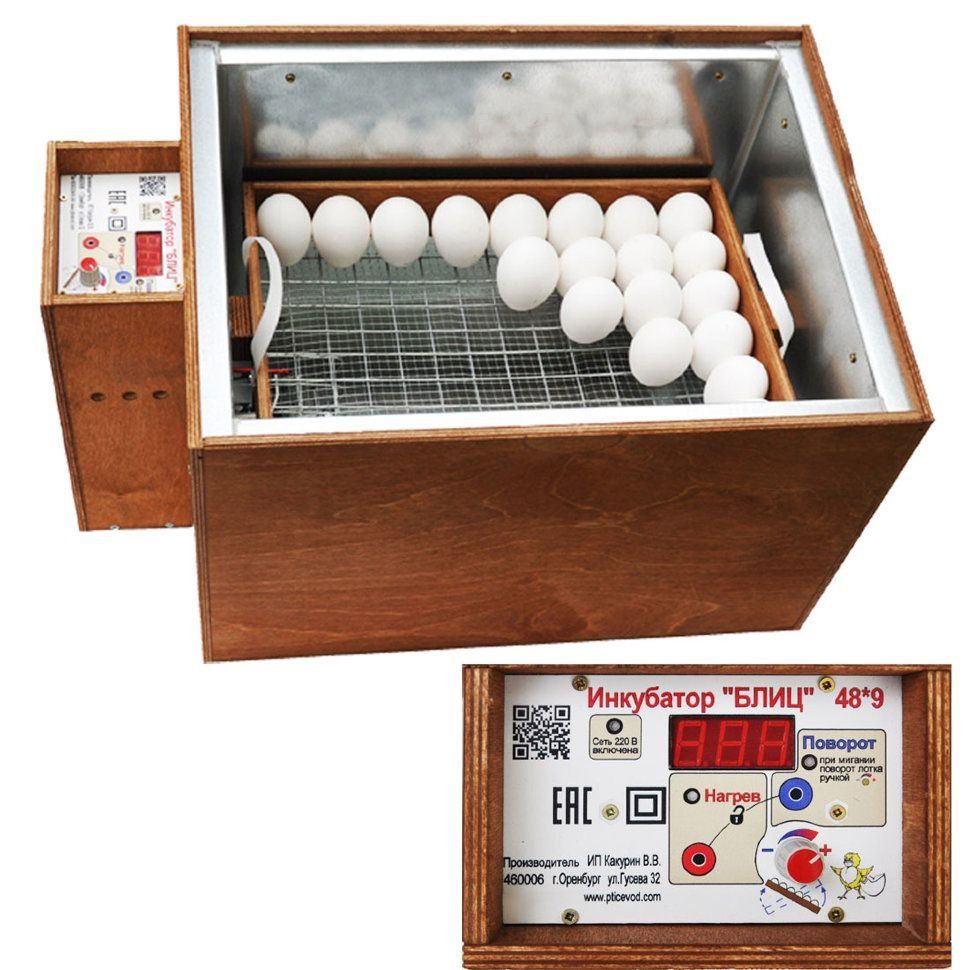 L'appareil a la capacité de fonctionner à la fois à partir du réseau et à partir d'une source d'alimentation de secours. Le seul inconvénient de l'incubateur est qu'en cas de panne d'une partie de l'appareil, sa réparation coûte très cher.