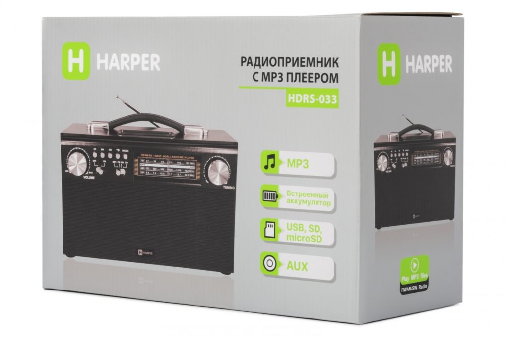 La gamme de fréquences que l'appareil comprend est assez large. Il comprend AM, FM, SW, SW2. L'alimentation est la batterie qui est incluse dans le kit. La charge se fait via le port USB. La batterie durera 6 à 8 heures de diffusion continue. Le début de la charge est indiqué par un indicateur spécial. Une antenne fiable fournit un signal stable.