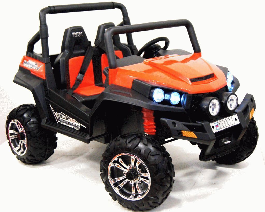 Cette voiture électrique à deux places est l'une des plus appréciées des enfants. Il se caractérise par une grande capacité de cross-country et de bonnes caractéristiques de vitesse. Les enfants aiment aussi la machine car vous pouvez non seulement monter dessus, mais aussi transporter des marchandises dans un corps spécial. De plus, les sièges à dossier ergonomique de la voiture peuvent être ajustés, il y a un support pour les bouteilles d'eau, une imitation des parties principales des vraies voitures. De plus, ce modèle est également considéré comme très fiable et sûr. Il est fabriqué à partir de plastique résistant aux chocs.