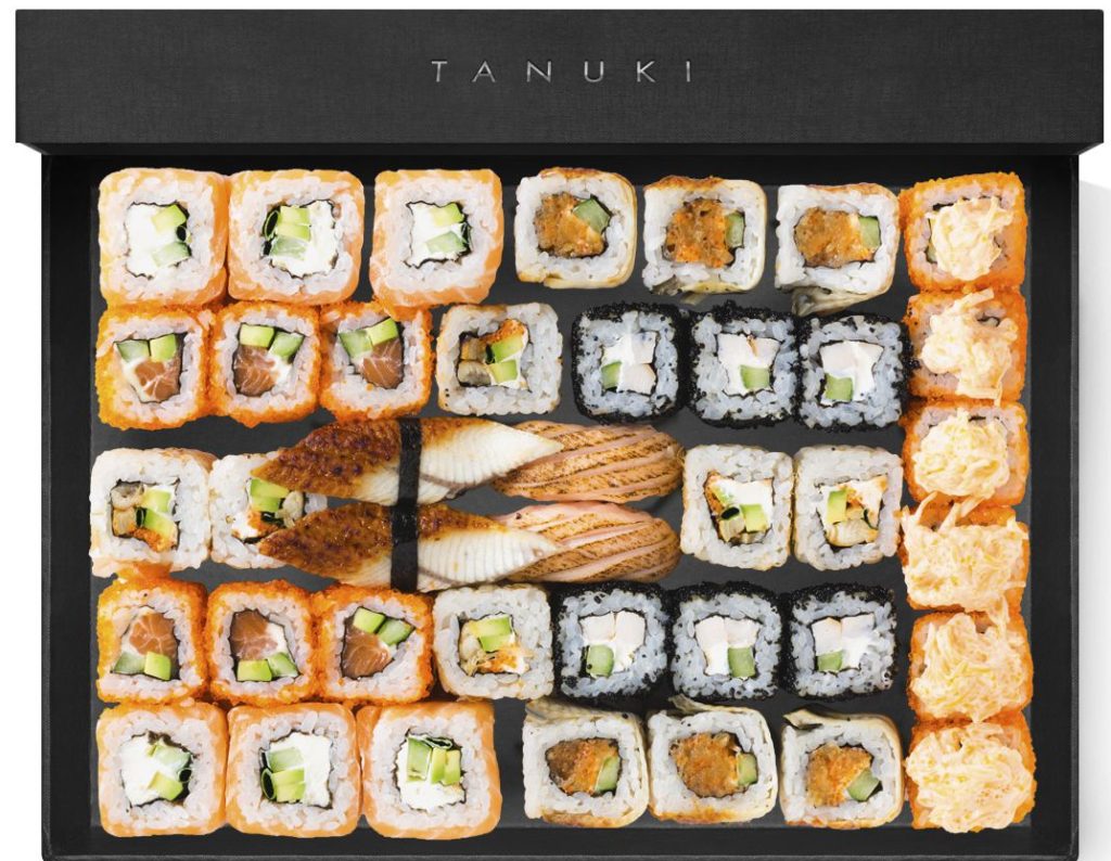 Le restaurant Tanuki mérite également une place de choix dans le classement. Il y a un grand choix de plats japonais ici. Il y a plus de 70 morceaux de sushis et de petits pains dans le seul menu du restaurant. Au restaurant, vous pourrez déguster des petits pains frits et cuits au four, des dim sum, des sashimis.Il existe également des plats spéciaux pour les végétariens et des aliments pour bébés. À partir de l'assortiment présenté, vous pouvez collecter des ensembles. Les plats sélectionnés seront livrés à l'adresse dans la demi-heure. L'attention des clients est attirée par le service des plats et leur apparence. Après avoir commandé de la nourriture à la maison, le client la reçoit dans une grande et belle boîte. Par conséquent, la livraison du restaurant Tanuki est souvent commandée les jours fériés. Si vous le souhaitez, vous pouvez commander des petits pains enveloppés dans un grand pain pita ou servis sur une feuille de nori avec un chapeau de fromage. Il existe également des combinaisons de saveurs inhabituelles au menu, par exemple du poivre, de la roquette, de l'aubergine et des champignons, ou de l'avocat en combinaison avec des concombres, des fraises et du crabe.