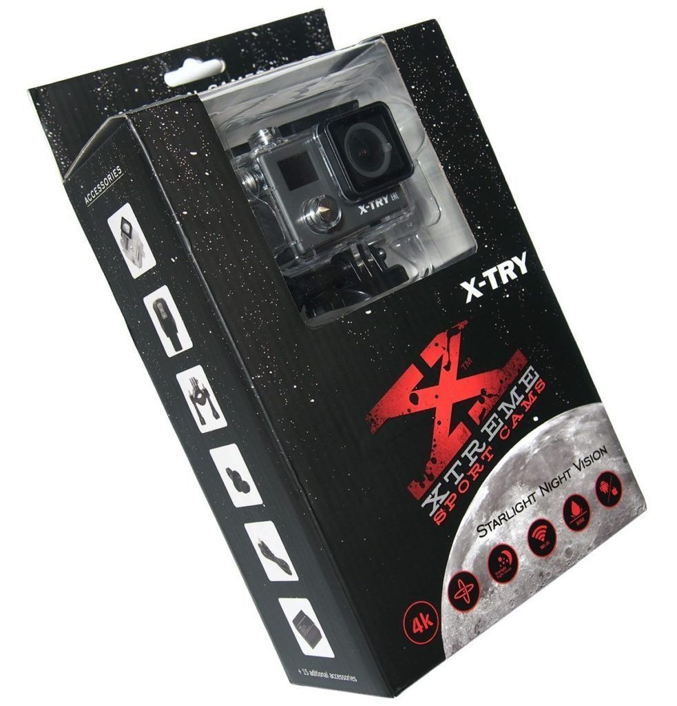 À partir d'octobre de l'année dernière, la gamme d'appareils photo X-TRY a été reconstituée avec de nouveaux modèles. Il y en avait 3 au total, c'étaient des variantes du même appareil photo, seulement avec quelques accessoires modifiés. Des ventouses pour l'installation dans une voiture, un chargeur, certaines d'entre elles et une télécommande ont été ajoutées au package standard.