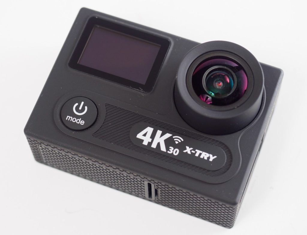 En apparence, ce modèle de caméra d'action ressemble au X-TRY XTC250 PRO. Les détails distinctifs sont des marquages, sinon ils sont complètement identiques. Sur le panneau avant se trouve un petit écran avec un bouton marche/arrêt situé en dessous.