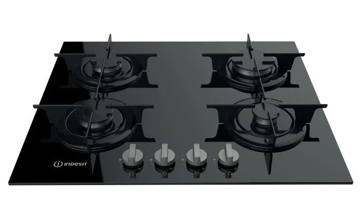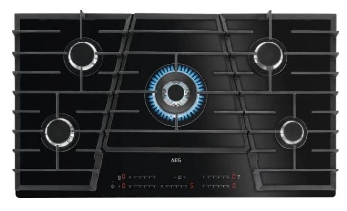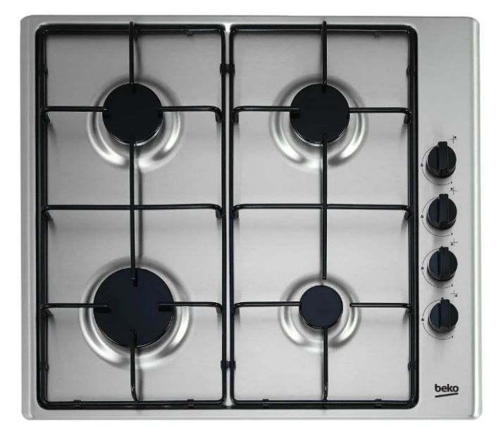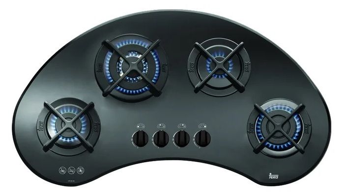 Gaz sur verre noir. Il a une conception de grille modernisée, ou plutôt son absence, les éléments stables sont situés uniquement au-dessus des brûleurs.