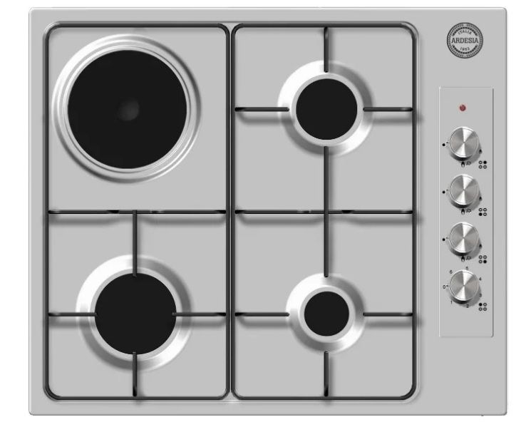 Modèle avec allumage électrique, système d'installation indépendant. La construction en acier inoxydable avec des grilles en fonte de couleur argentée conviendra à tous les intérieurs de cuisine.