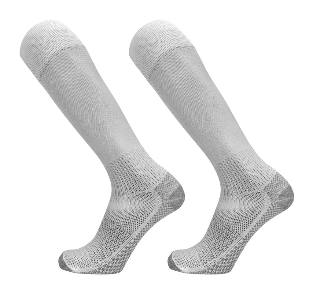 Chaussettes de football sans chaussettes avec propriétés de compression. Bien soutenir les muscles des jambes, sans restreindre le mouvement de l'athlète et en lui apportant légèreté et liberté. La partie supérieure du produit est équipée d'une large bande élastique qui le maintient solidement sur la jambe, l'empêchant de se déplacer et de ne pas se tordre. Des inserts en silicone placés sur toute la semelle offrent un effet de fixation et de stabilisation supplémentaire. Les inserts ont une texture uniforme, leur présence rend les chaussettes "SPORT-BAZA" encore plus confortables. Disponible dans une gamme de tailles universelles. Quant aux couleurs, le fabricant propose un choix de trois options : blanc, bleu et noir. Le coût moyen est de - 850 roubles.