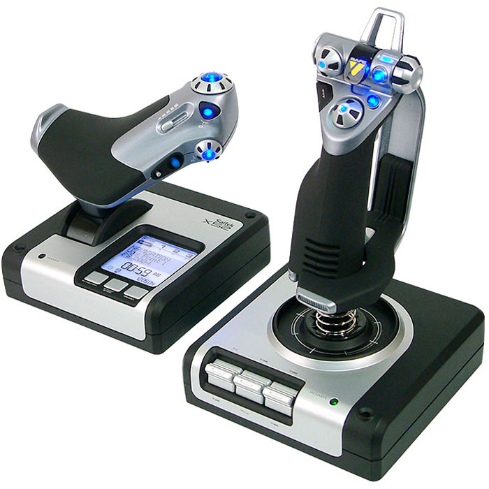 Si vous souhaitez disposer d'un joystick pour les joueurs professionnels, vous devez faire attention au système de vol Saitek x52 pro. Cet appareil volant haut de gamme offrira un contrôle confortable. Les principales caractéristiques comprennent : 7 axes, un écran intégré, 19 boutons, un bouton de commande du moteur et 3 interrupteurs. Contrôleur de type filaire, connexion au PC via USB. L'écran affiche des informations détaillées sur l'état de l'avion dans le jeu, option d'éclairage 3. Ce modèle est équipé de capteurs à effet Hall sans contact et, grâce à la manette des gaz, le contrôle du moteur est de premier ordre.