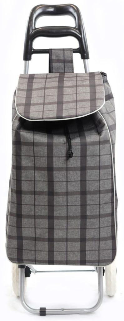 Ce modèle des fabricants chinois a un prix abordable et deviendra un assistant indispensable lors de la visite des épiceries. L'avantage de l'appareil est l'absence d'étui et la possibilité de rouler facilement le sac à la taille souhaitée. Vous pouvez transporter jusqu'à 25 kg sur un tel appareil. Extérieurement, le modèle a une couleur à carreaux. De plus, une caractéristique de l'appareil est la possibilité de transformer le chariot en un produit avec des poignées.