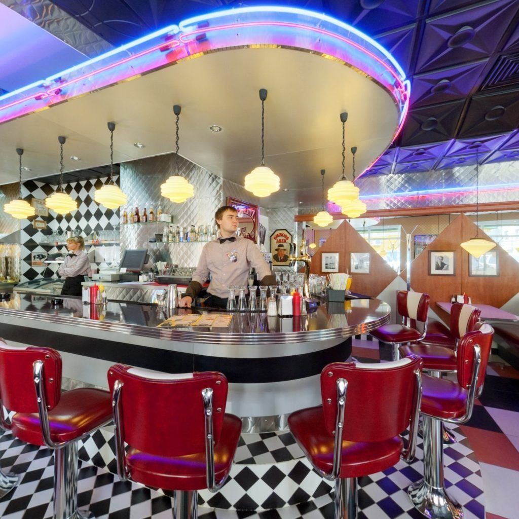 Dans l'unique restaurant métropolitain, situé rue Sretenka, 1, le design est fait dans le style de l'Amérique des années cinquante. L'atmosphère appropriée est maintenue par les propriétaires de l'institution en tout. Les visiteurs se voient proposer des plats américains traditionnels. Au crédit du restaurant, le menu comprend non seulement les burgers habituels pour ce pays, il y a aussi des plats traditionnels vraiment délicieux. Un autre détail commun à l'Amérique à cette époque est les couleurs vives de la décoration intérieure. A la demande des visiteurs, des tables insolites leur seront fournies, mais elles doivent être réservées à l'avance. Le soir, l'atmosphère agréable est complétée par de la musique live et des groupes de reprises.