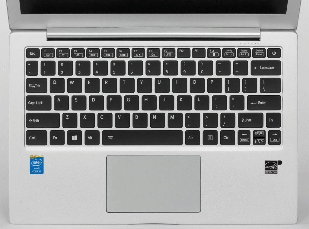 L'ordinateur portable est fabriqué en polycarbonate beau et solide de couleur blanche. Il y a USB 2.0 et 3.0, ainsi qu'une entrée HDMI. Le clavier est petit, chiclet et a une course moyenne. Il est pratique d'imprimer dessus. Elle n'a pas de rétro-éclairage.Le pavé tactile est grand et prend en charge tous les gestes connus dans le système d'exploitation Windows.