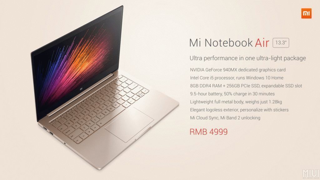 Spécifications du Xiaomi Mi Notebook 13.3 :