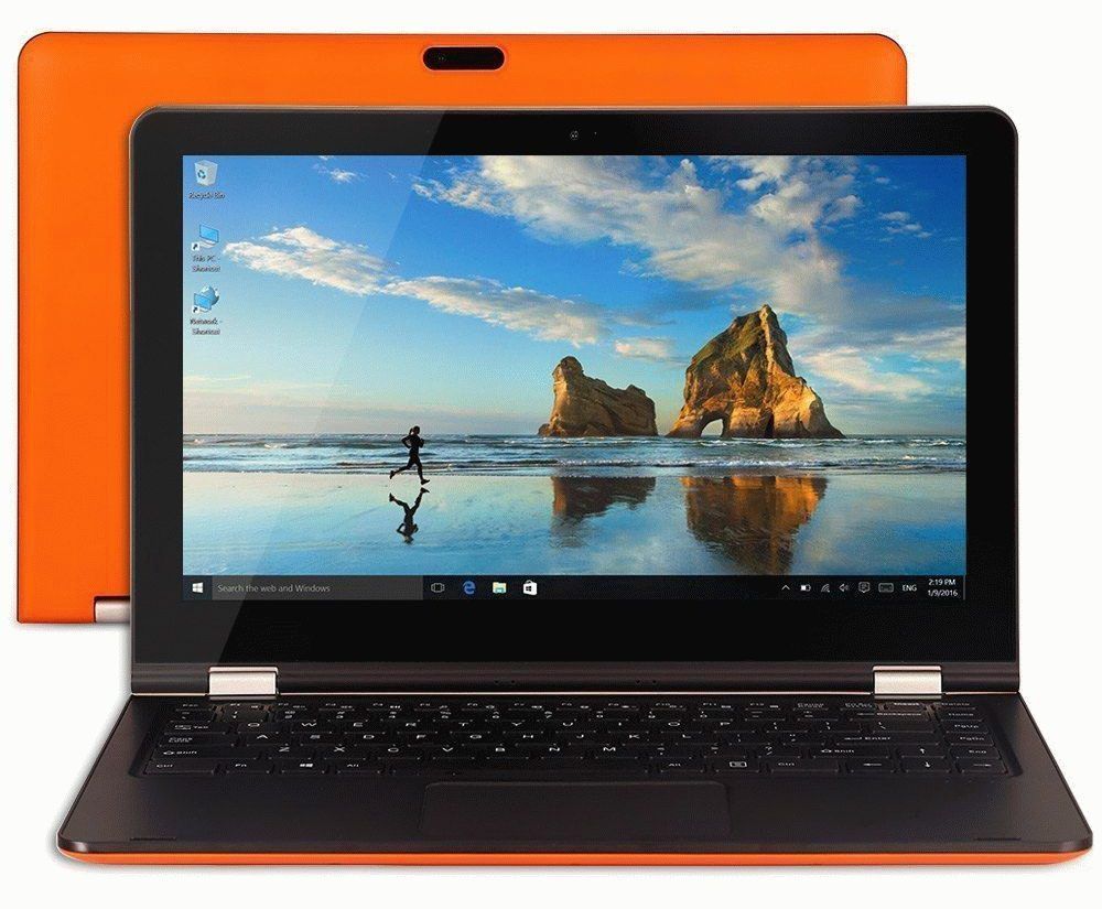 Le corps de l'ordinateur portable est en plastique caoutchouté orange, ce qui donne à l'ordinateur portable un aspect frais et lumineux.