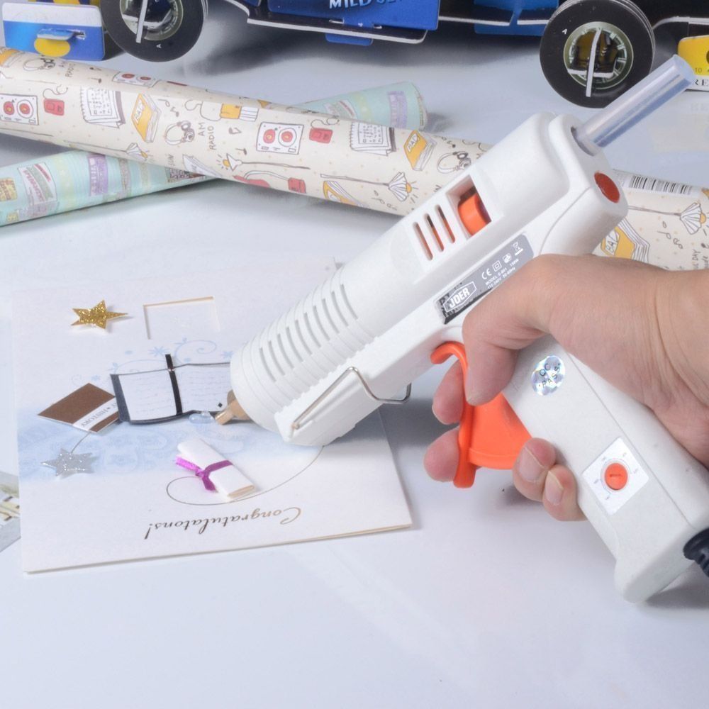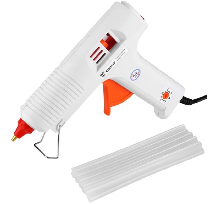 Ce modèle a d'excellentes caractéristiques. L'outil à haute température (200˚ C) chauffe rapidement et applique uniformément la colle sur la surface. Convient pour sceller et coller divers matériaux (bois, plastique, métal, tissu).