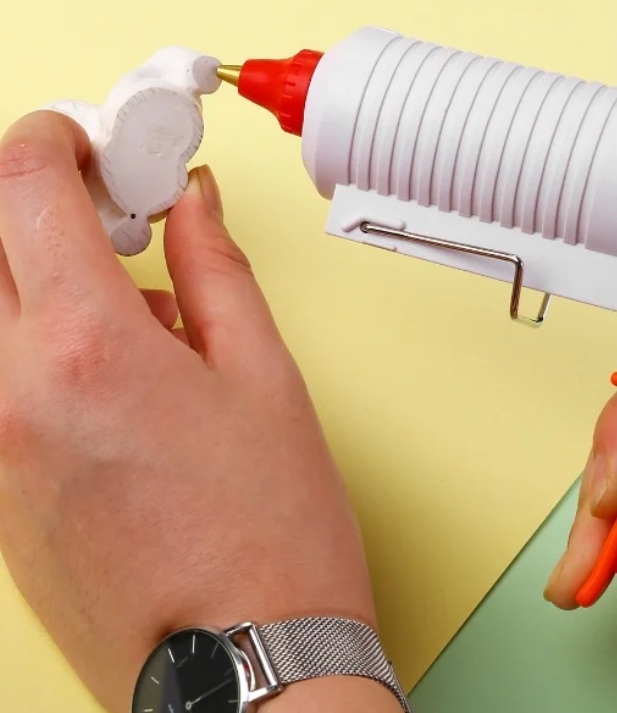 La colle fondue durcit très rapidement, donc avant de commencer à travailler pour la première fois, il vaut la peine de s'entraîner à coller des objets simples (par exemple, des boîtes en carton), puis de passer à des travaux plus complexes qui nécessitent une application précise et précise de l'adhésif.