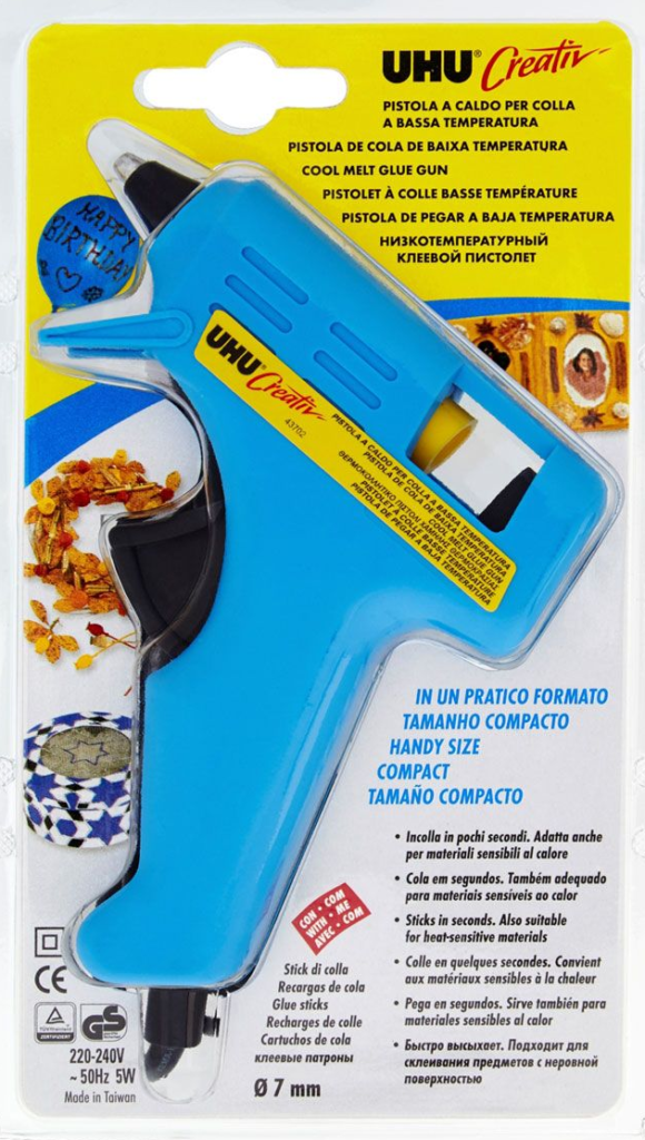 La tâche prioritaire du gadget est la tâche du collage fiable de toutes sortes de surfaces, y compris le papier, le carton, ce qui résout de nombreux problèmes pour les artisanes.