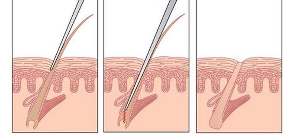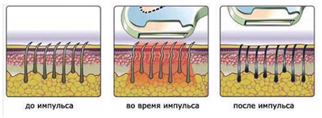 Sous l'influence de l'énergie absorbée, le follicule pileux est chauffé, ce qui le détruit ensuite ainsi que le vaisseau qui l'alimente. Le laser n'enlève que les poils en croissance active, soit 15% de toute la pilosité.