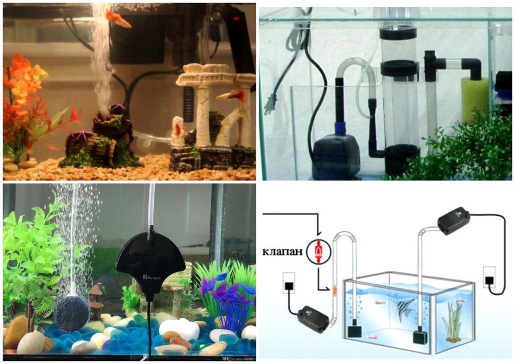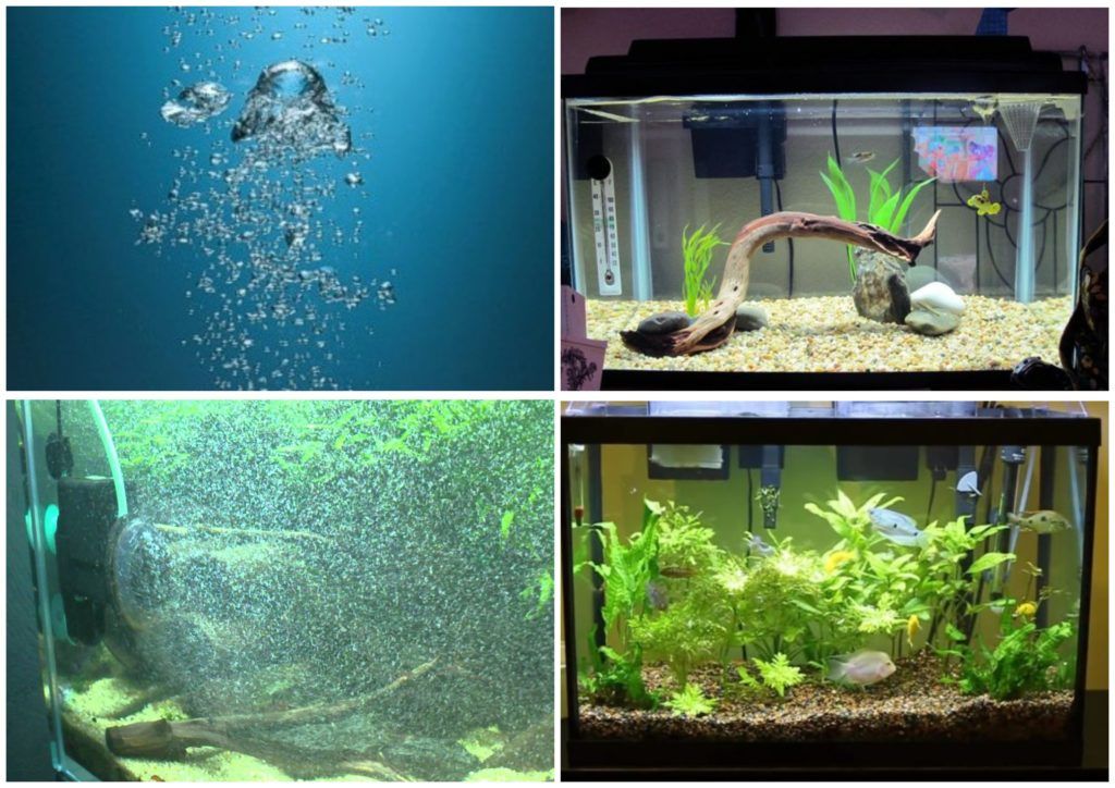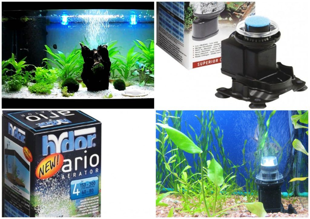 De plus, les aérateurs peuvent être internes ou externes. L'extérieur peut être installé sous le réservoir, derrière celui-ci, afin de ne pas gâcher le "paysage marin". Les internes sont placés sur le fond ou le mur de l'aquarium - le bruit disparaît.