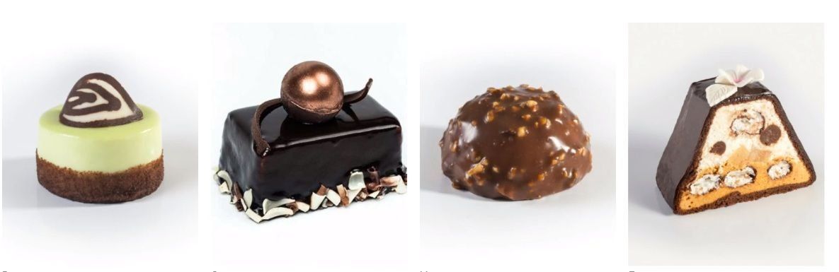 L'assortiment de la maison de confiserie comprend plus de 100 variétés de pâtisseries, ce sont des gâteaux classiques et sur mesure, des macarons, des pâtisseries, des profiteroles, des parfaits, des guimauves, des cheesecakes, des figurines en chocolat, des bonbons faits à la main et des bonbons orientaux.