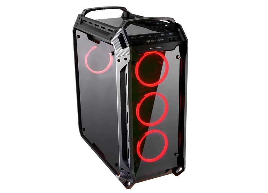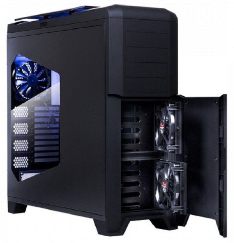 Le produit diffère par sa taille et convient aux personnes qui passent tout leur temps libre dans les jeux informatiques. Sur le boîtier, il y a des poignées spéciales avec lesquelles vous pouvez déplacer l'ordinateur assemblé à l'emplacement souhaité. Tous les panneaux sont en verre, jusqu'à 4 cartes vidéo peuvent être utilisées simultanément. Le boîtier dispose de 4 ventilateurs rétroéclairés, afin que l'utilisateur puisse voir tous les processus en cours à l'intérieur du modèle. Les filtres à poussière amovibles empêchent la contamination et sont faciles à changer si nécessaire.
