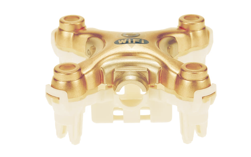 Le modèle impressionne par sa taille. Il n'est pas vrai de dire que ce quadricoptère est assez miniature. Il serait plus rationnel de le comparer à une banque d'alimentation d'une capacité d'environ 10 000 mAh. L'appareil est équipé de supports à vis, grâce auxquels le drone peut être mis dans votre poche et être sûr que rien ne lui arrivera.