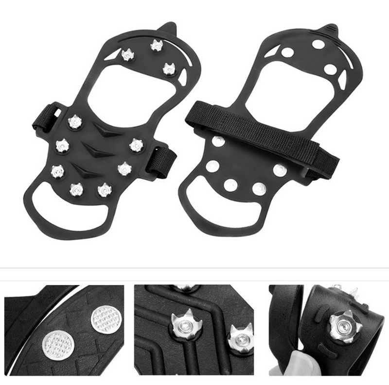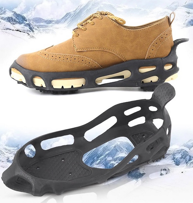Semelles antidérapantes amovibles en caoutchouc avec pointes en acier pour porter des chaussures en hiver - une excellente option pour l'hiver. Vous pouvez prendre soin non seulement de vous-même, mais aussi de vos proches et de vos parents par temps glissant. Les patins anti-givre pour chaussures sont conçus pour prévenir les chutes lors du passage sur des surfaces glissantes, de la neige, de la glace, etc.Ils sont une excellente solution pour se déplacer dans des conditions de glace urbaines. Les verrous à glace cloutés sont solidement fixés sur la pointe et le talon. Fabriqué en latex résistant à l'usure et équipé de 10 pointes métalliques. Grâce à cela, le risque de glisser sur la glace est réduit et une personne évitera les blessures et les dommages. Ce modèle clouté s'est imposé comme un accessoire fiable et indispensable par mauvais temps et conditions glaciales. En raison du fait qu'ils sont très compacts, ils ne prennent pas beaucoup de place, ils sont faciles et pratiques à transporter. Le coût recommandé pour les chaînes de magasins est de 1300 roubles.