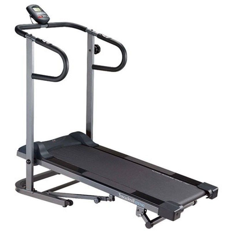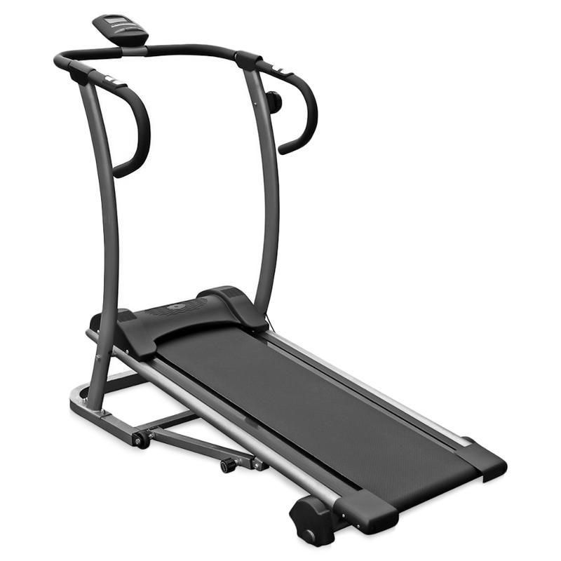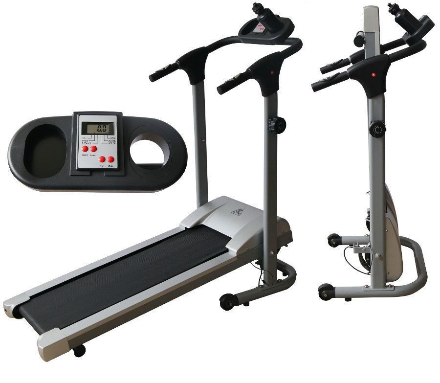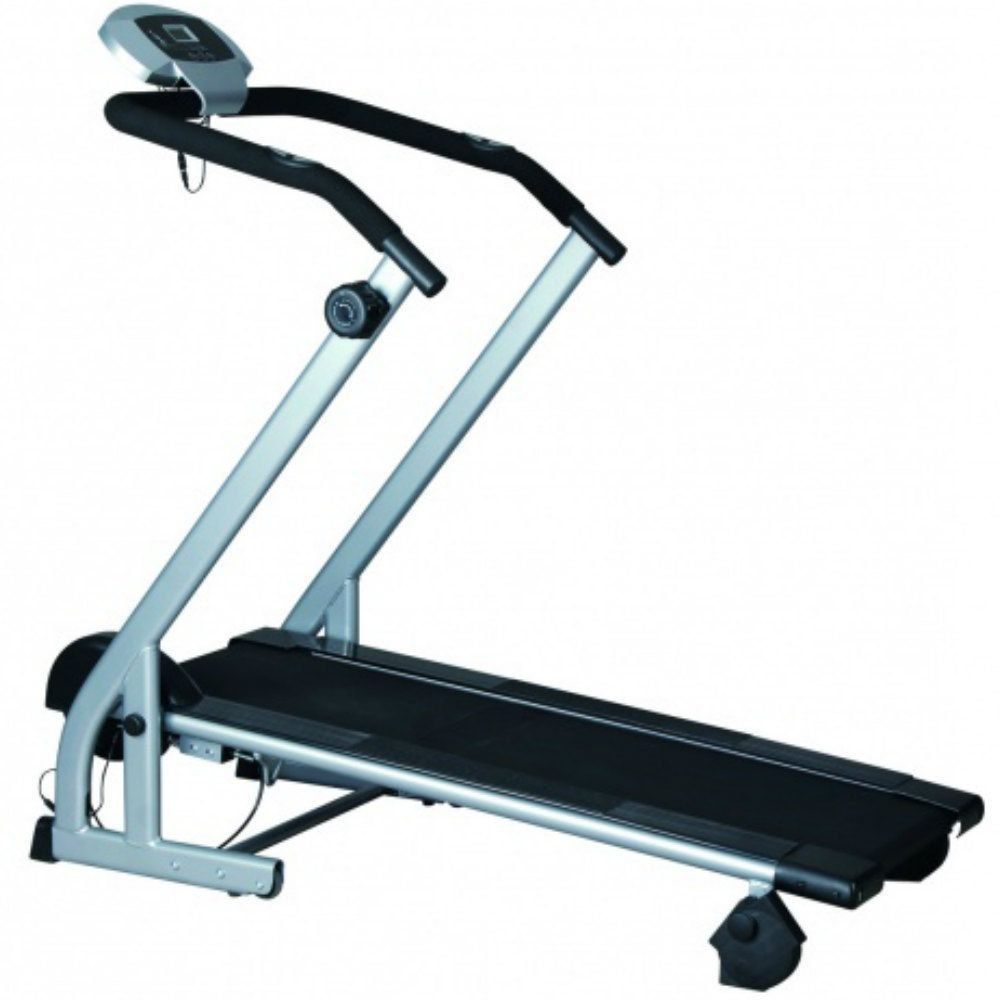 Modèle pliable assez pratique pour faire fonctionner Sport Elite TM1596-01. Il est équipé de 8 niveaux de charge et dispose d'un capteur de fréquence cardiaque sur la poignée. L'écran affiche la vitesse actuelle, la distance parcourue et les calories brûlées. La taille de la bande de course est de 33 × 119 cm, adaptée aux utilisateurs dont le poids ne dépasse pas 100 kg. Si vous le souhaitez, vous pouvez augmenter l'angle d'inclinaison à l'aide du réglage par paliers. Malheureusement, le modèle n'a pas de système d'amortissement. Pour faciliter le transport, il y a des roulettes (ce sont aussi des roulettes).Le poids total de l'appareil est de 28 kg.