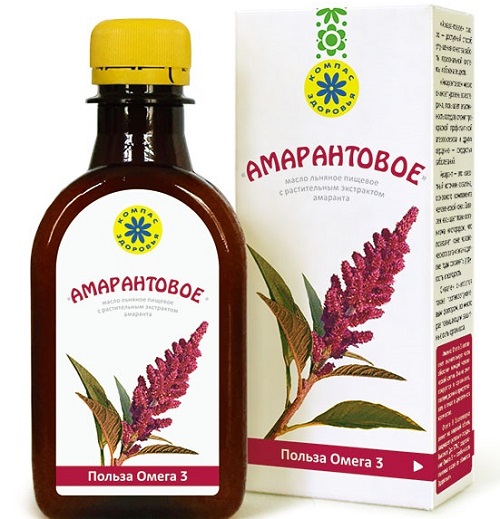 La marque Compass Health propose un extrait économique d'amarante à l'huile de lin.Les fleurs d'amarante associées à l'extrait d'huile de lin permettent d'activer la respiration cellulaire et de libérer l'oxygène. Le fabricant promet que son produit est capable de protéger contre les radicaux libres et de prévenir la formation de tumeurs. De plus, les promesses du fabricant incluent la résorption des cicatrices et une augmentation de l'élasticité de la peau. La valeur nutritionnelle est élevée, environ 900 calories. Il est recommandé de consommer l'extrait avec une petite quantité de nourriture ou séparément, comme "aliment curatif" spécial. Posologie : D'abord 1 cuillère à café deux fois par jour, puis augmenter progressivement jusqu'à 1 cuillère à soupe deux fois par jour. Il peut y avoir une lourdeur dans l'estomac ou un relâchement des selles, mais après cinq jours, les symptômes disparaissent.