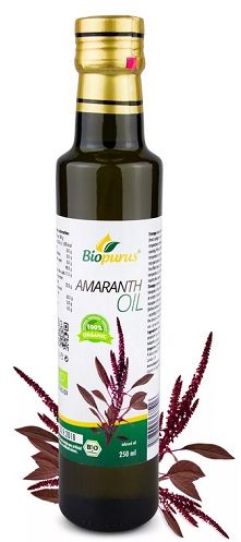 Une autre huile d'amarante non raffinée et pressée à l'état brut peut être achetée auprès de la société Planet Siberia. Le produit est fabriqué dans des récipients en verre d'un volume de 100 ml. La méthode de pressage à froid aide à garder toutes les propriétés curatives intactes. La teneur élevée en vitamine E assure la normalisation du fonctionnement du cœur, en augmentant l'élasticité des parois des vaisseaux sanguins, en abaissant le cholestérol et en prévenant de haute qualité le cancer. L'huile contient les phytostérols et les caroténoïdes les plus importants, dont la fonctionnalité permet au corps d'être aussi sain que possible. Certains acheteurs notent que l'humeur s'améliore et que l'anxiété diminue. La valeur nutritionnelle dans 100 ml est de 900 calories. Vous pouvez commander en ligne dans la boutique en ligne. La date de péremption indique que l'huile ouverte doit être utilisée dans un délai d'un mois.