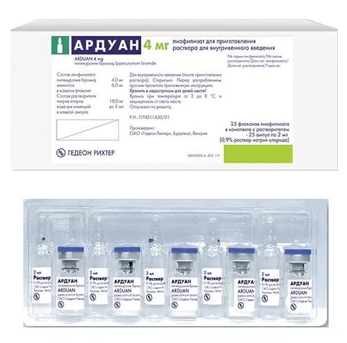 En cas de bruxisme lors d'interventions dentaires, Arduan est souvent prescrit pour soulager les spasmes de la mâchoire. Son action pharmacologique vise à bloquer la transmission du signal des terminaisons nerveuses aux fibres musculaires.Outre le bruxisme, l'intubation endotrachéale et la relaxation des muscles squelettiques lors de diverses interventions chirurgicales, lorsqu'une relaxation musculaire d'une demi-heure est requise, sont considérées comme une indication d'utilisation. Il s'agit d'un mylorelaxant non dépolarisant, produit sous forme de solution, il ne peut être utilisé par voie intraveineuse que sous une forme fraîchement préparée. Attribuer aux enfants de plus de 14 ans et aux adultes. Pour les enfants de moins de 14 ans, la posologie est prescrite par le médecin, en fonction de la maladie ou de l'intervention. Les effets secondaires comprennent la faiblesse musculaire, la somnolence, la dépression respiratoire et d'autres symptômes. Mais ils surviennent rarement et représentent généralement un cas sur cent. Veuillez noter que le médicament est utilisé le plus souvent dans un hôpital ou une salle d'opération.