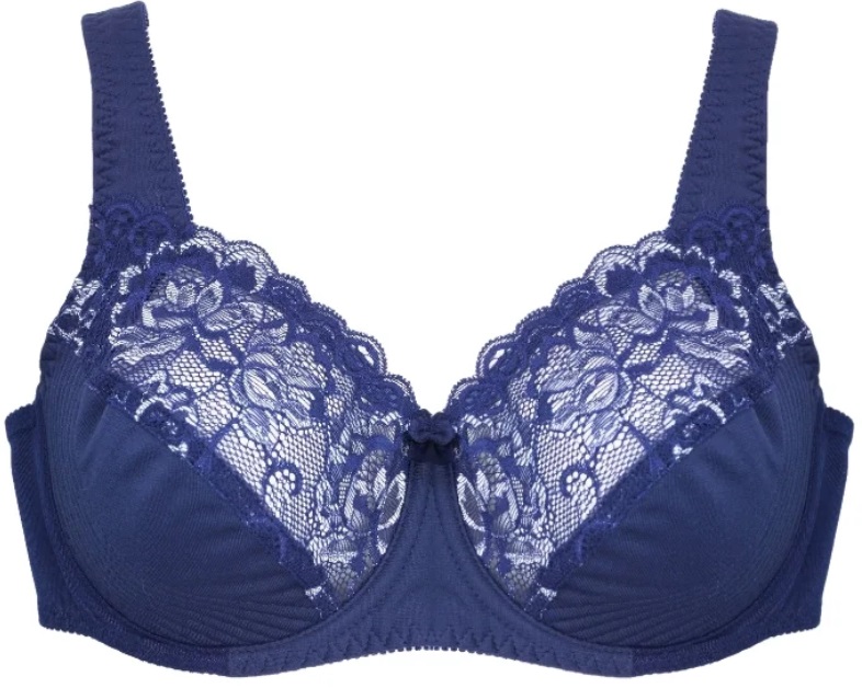 Le bonnet profond est relié par trois coutures. Un déflecteur central haut et de larges bretelles ornées d'un ruban festonné créent un ajustement parfait pour les fortes poitrines. De l'intérieur, le modèle est dupliqué avec un fin insert en coton. Fermeture arrière solide - sur deux crochets. Un jeu d'attaches supplémentaires permet de régler le volume du soutien-gorge. Le coût est de 1450 roubles.