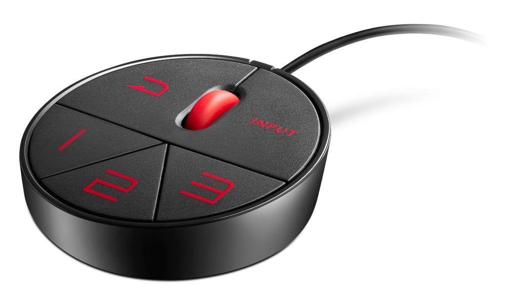 Le moniteur est également livré avec une mini télécommande pour contrôler le Swift Switch ou le S Switch. En règle générale, il est utilisé pour jouer à des jeux, mais il peut également être configuré pour fonctionner dans des programmes. Les désignations des boutons de la télécommande sont reflétées dans les instructions jointes à l'appareil.