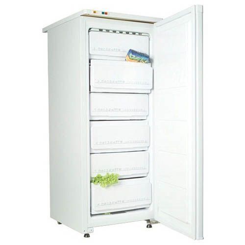 Les équipements de petite taille attirent avec un petit poids (36 kg) et un volume de 110 litres, avec une capacité de congélation allant jusqu'à 12 kg par jour. Il y a quatre tiroirs à l'intérieur de l'armoire, ce qui vous permet de distribuer différents produits sans mélanger leurs odeurs.
