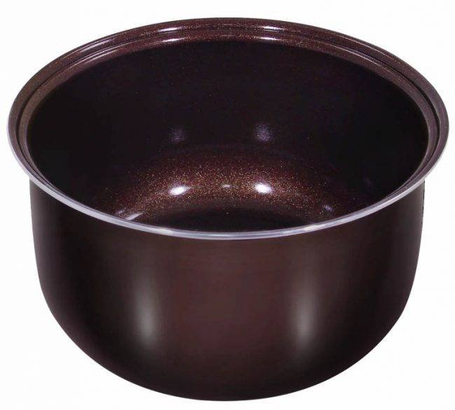 Le bol de cuisson est fabriqué avec un revêtement antiadhésif. Le type de revêtement utilisé par Marta est fabriqué à partir de matériaux respectueux de l'environnement. Lorsqu'il est chauffé, la libération de substances nocives est exclue. Le revêtement aide à empêcher les aliments de coller. Pour augmenter la durée de vie du bol, il a été rendu résistant aux changements de température. Bien sûr, il vaut mieux ne pas prendre de risques et ne pas tester les plats avec des contrastes, mais si cela se produit, vous n'avez pas besoin de courir pour un nouveau bol.