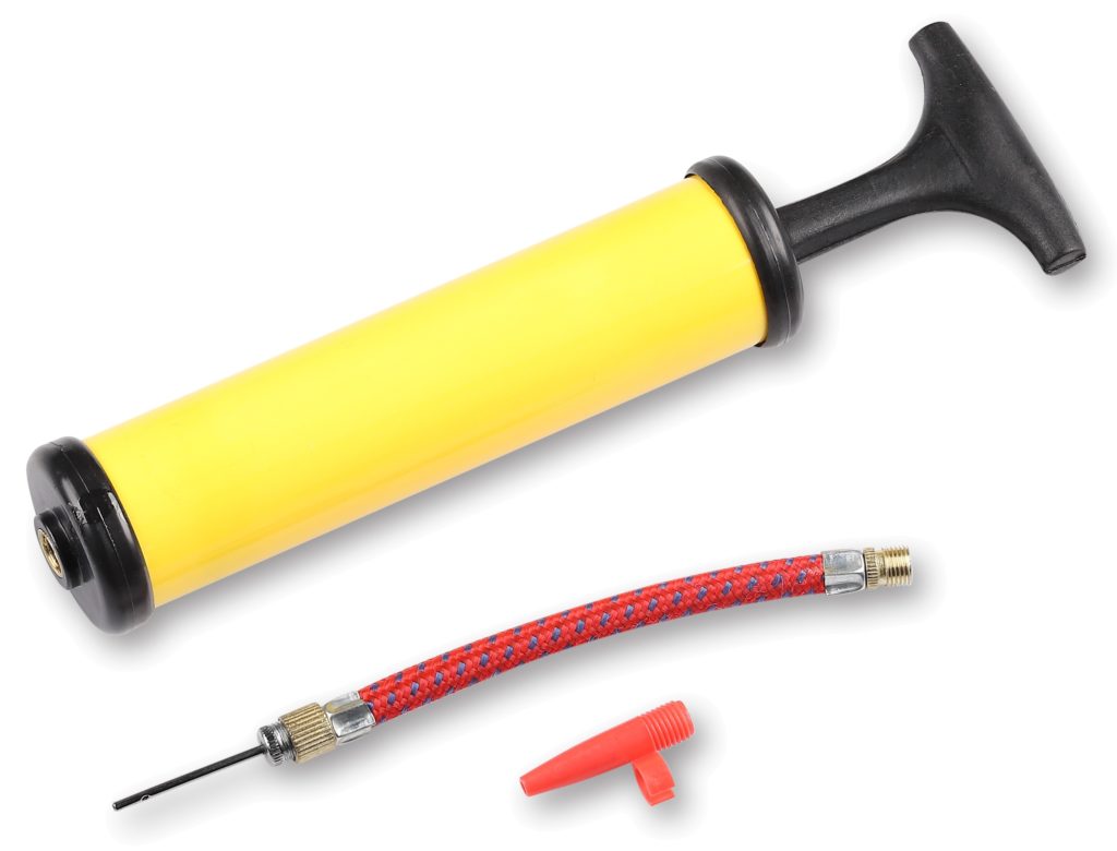 Pompe à main en plastique avec aiguille. Longueur : 20 cm Gonfle rapidement et efficacement les ballons de football et de basket. Vous pouvez acheter des buses supplémentaires pour pomper un inventaire d'un type différent. Prix moyen : 144 roubles.