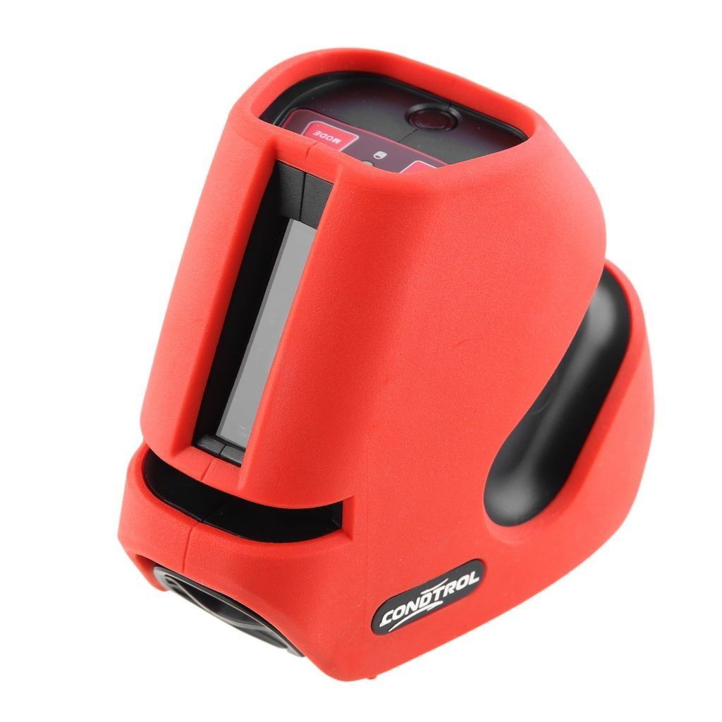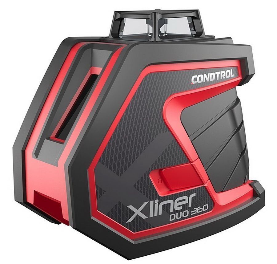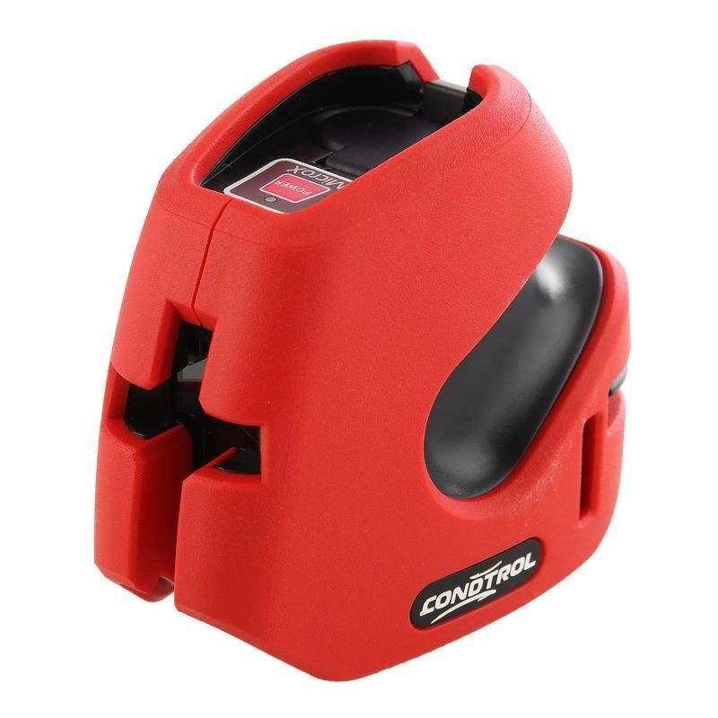 Le modèle appartient à la classe des niveaux laser professionnels. Il y a un plan vertical et un plan horizontal dans cet appareil.L'étui est fait de manière très inhabituelle, mais il offre une bonne protection contre les chutes et les dommages. Cet appareil est complètement différent des autres modèles CONDTROL. Le corps est réalisé sous la forme d'un trapèze rectangle. Le produit lui-même a une empreinte énorme. La partie principale est en plastique industriel solide. Le compartiment à piles est situé au bas de la boîte. La porte du compartiment est en plastique fragile. A l'ouverture, il y a un risque de le casser.