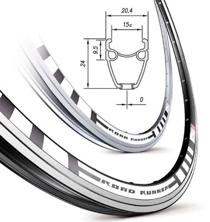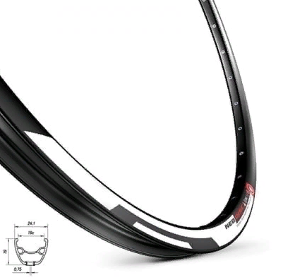 La jante noire est coulée en alliage ALLOY 6063 T6. Il a une double couche et un profil rigide. Le plus souvent, ce modèle est choisi par les athlètes professionnels. Prévoit l'installation de pneus d'une largeur de 18-28 mm. Type de frein : V-brake.